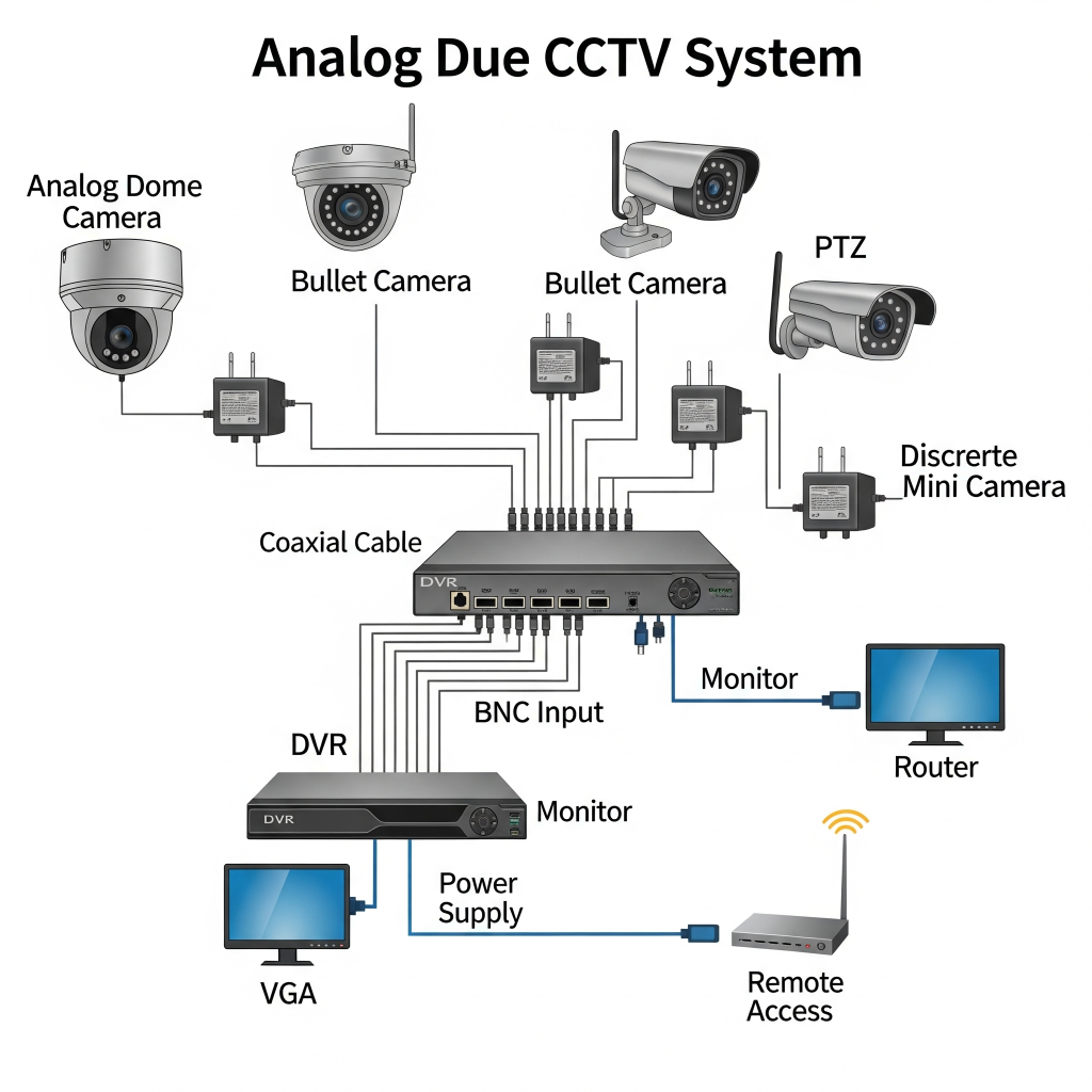Untuk mendapatkan pengawasan yang efektif, sistem CCTV analog membutuhkan beberapa komponen yang saling bekerja sama. Oleh karena itu, memahami setiap komponen dan keterkaitannya sangat penting untuk memastikan instalasi yang berhasil.